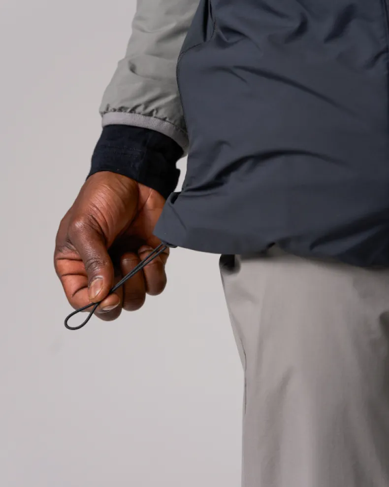 The Vest features an offset double-zippered front to avoid contact with your chin, a stand collar, two zippered pockets at the waist, a drawcord adjustable hem, and a large zippered chest pocket with internal compartments.
