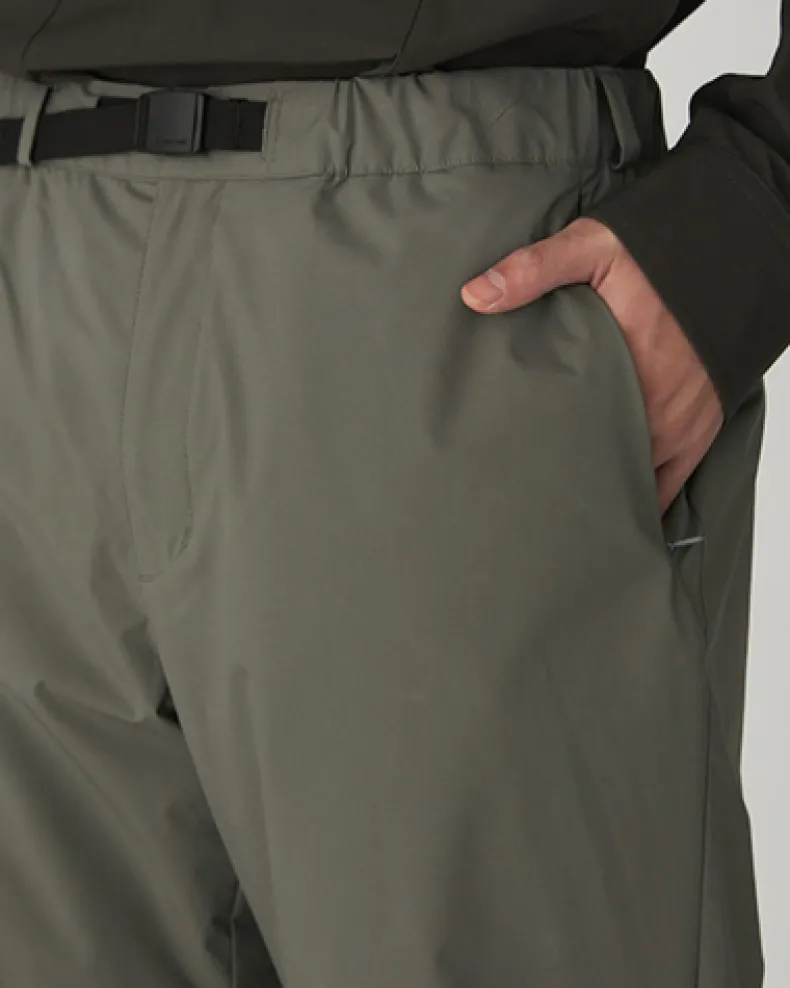 The 2L Octa Pants are insulated, water-resistant pants with high heat retention, windproofing, and a DWR finish. The face fabric is made from a stretchable ripstop polyester, with a polyurethane laminated internal layer for water-repellence and breathability. The 2L Octa Pants feature a front zip and snap closure with an integrated belt, dual seam pockets, back pocket, and tapered leg.