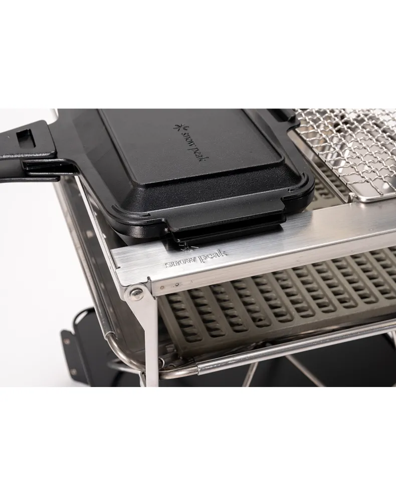 One side of the skillet features high ridges, allowing you to sear food with grill marks while elevating it above drippings. The other side features a smooth surface ideal for leveraging the non-stick properties of cast iron. Each side takes up approximately half the space of a , making it an ideal modular addition to your .