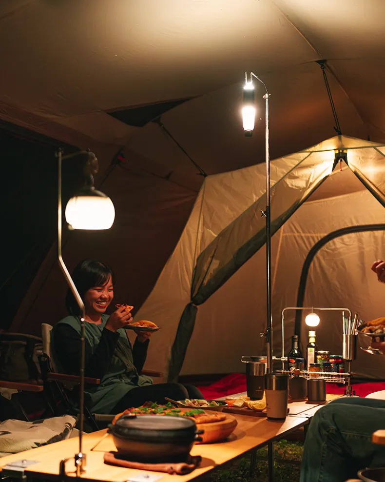 The Celes is a low-profile, multifunctional LED light. The lower light gently illuminates your gathering space, and the upper light shines on the ceiling, functioning as a large light source that illuminates the entire tent. The light features four brightness modes, an adjustable hanger, and can be mounted to a tripod or connected to Tabletop Architect (TTA) components for additional functionality.