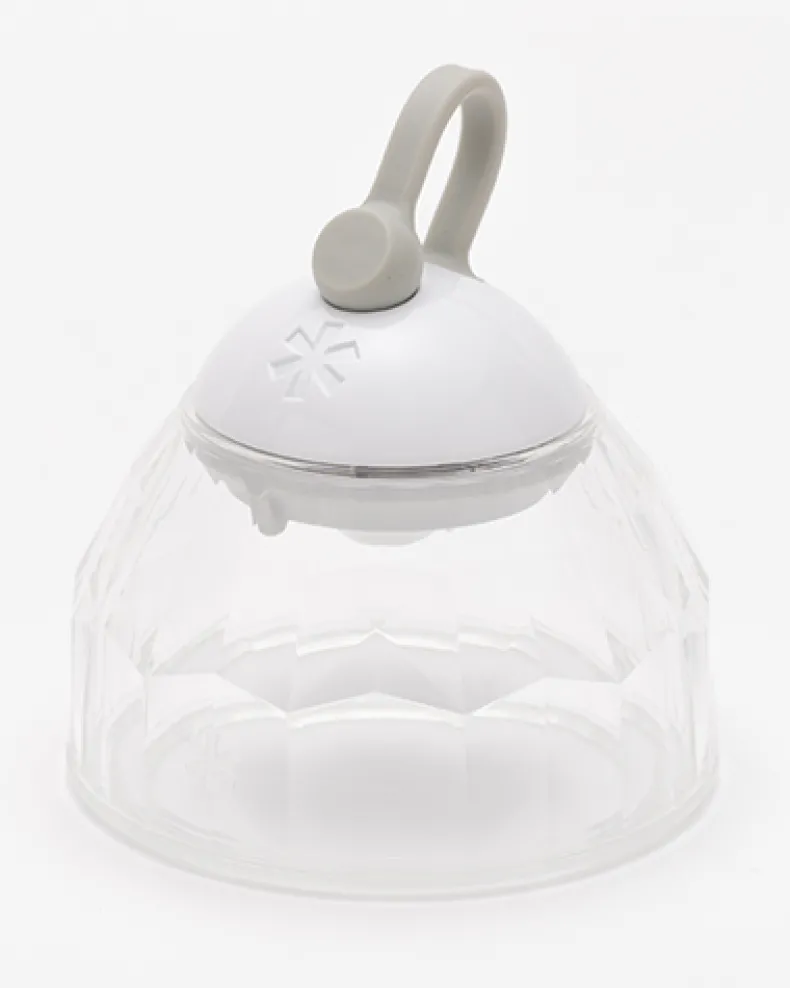 The Crystal Shade is a semi-transparent, faceted lantern shade. Made from silicone, the shade has a glass-like transparency and high durability. Swap your standard Hozuki or Mini Hozuki shade with the Crystal Shade to create ambiance for special occasions or everyday use.