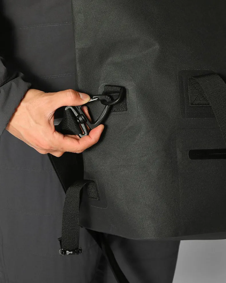 The Dry Boston Bag is a multi-use waterproof bag. The bag is sewn with TPU processed polyester using the welder crimping technique for durability and waterproofness. The Dry Boston Bag features a roll-top opening, hidden front pocket, air valve, and dual handles.