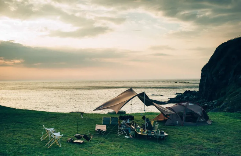 The HD Tarp Shield Hexa Evo Pro is a Japanese-designed tarp made of Snow Peak Shield Material. The easy-to-set-up tarp requires only two poles and six stakes to create a central gathering space in the campsite. The elegant shape combines innovative design with the functionality to house multiple tents and living areas underneath.