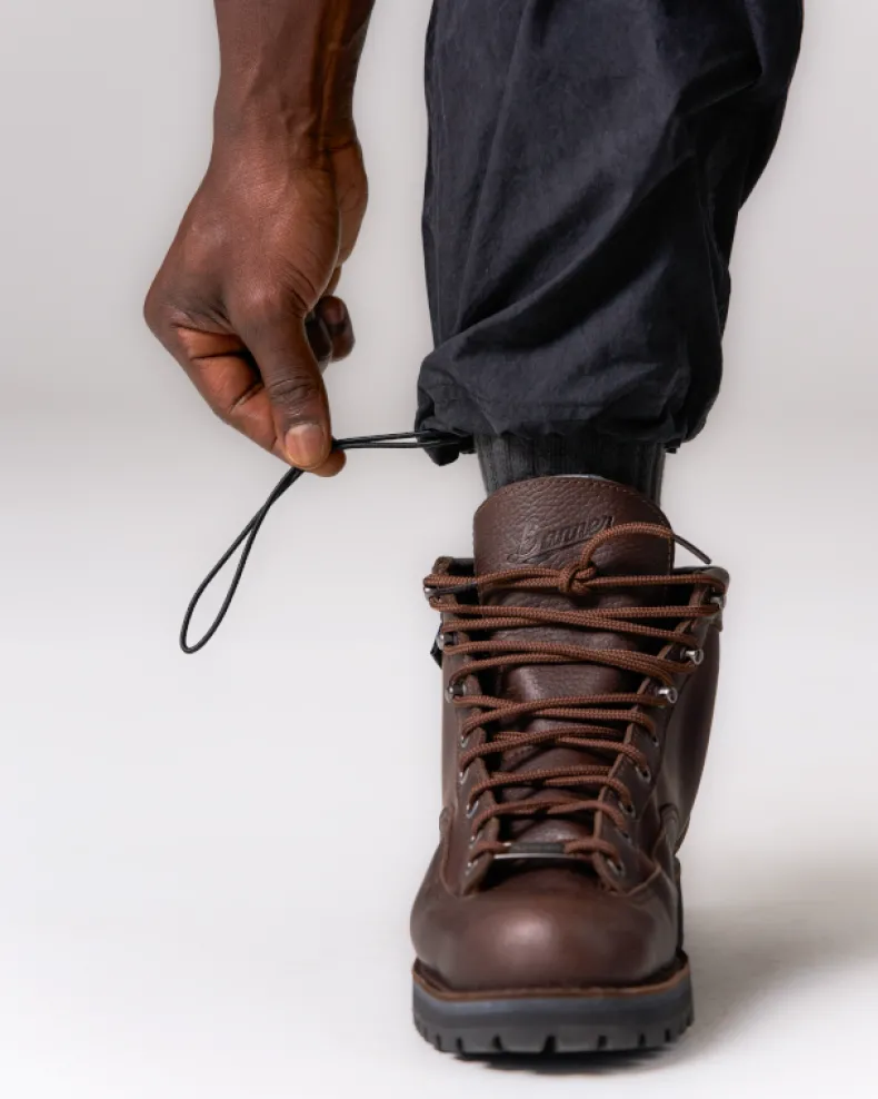 The pants are made from a yarn-dyed cotton and nylon blend that will develop a patina and crinkled texture with wear. Indigo, sulfide, and acid dyes are used to create the three unique colors.