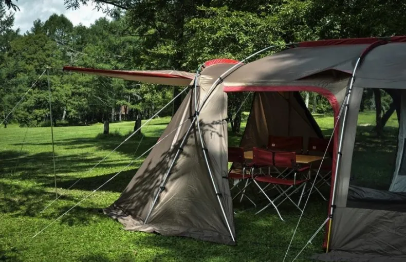 Fly Sheet: 150D Polyester Ox, Light-Shielding Pigment PU Coating 3,000mm, UV Cut Processing, Teflon Water Repellent, Roof: 150D Polyester Ox, PU Coating 1,800mm, UV Cut Processing, Teflon Water Repellent, Inner Tent: 68D Polyester Tuffa, 210D Polyester Ox, Bottom:PU Coating 1,800mm