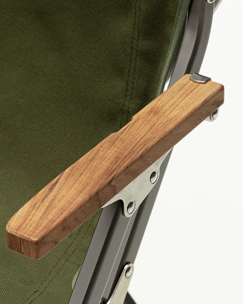 The Luxury Low Beach Chair in Dark Green is a limited-edition colorway of the Luxury Low Beach Chair. The chair has natural wood armrests and a polyester seat. The chair is stylish enough for the home or patio but sturdy enough to withstand the rigors of camp. The Luxury Low Beach Chair features a mesh storage pocket, wood armrest, and back that is 7 inches lower than the Low Beach Chair.