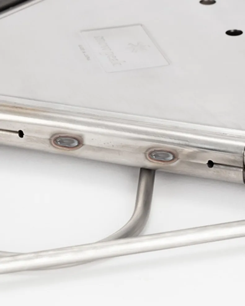 Designed and built in Niigata, Japan, the Pack& CarryL Fireplace is made of durable stainless steel. Use the Pack& Carry Fireplace as the centerpiece of gatherings in your backyard or the campfield. The fireplace folds flat for easy transportation and storage and integrates with a variety of cooking and grilling accessories for an all-in-one fire pit solution. Each purchase includes one fireplace and a nylon carry case. Pair the Pack& CarryL Fireplace with the and to transform the fire pit into a cooking solution.
