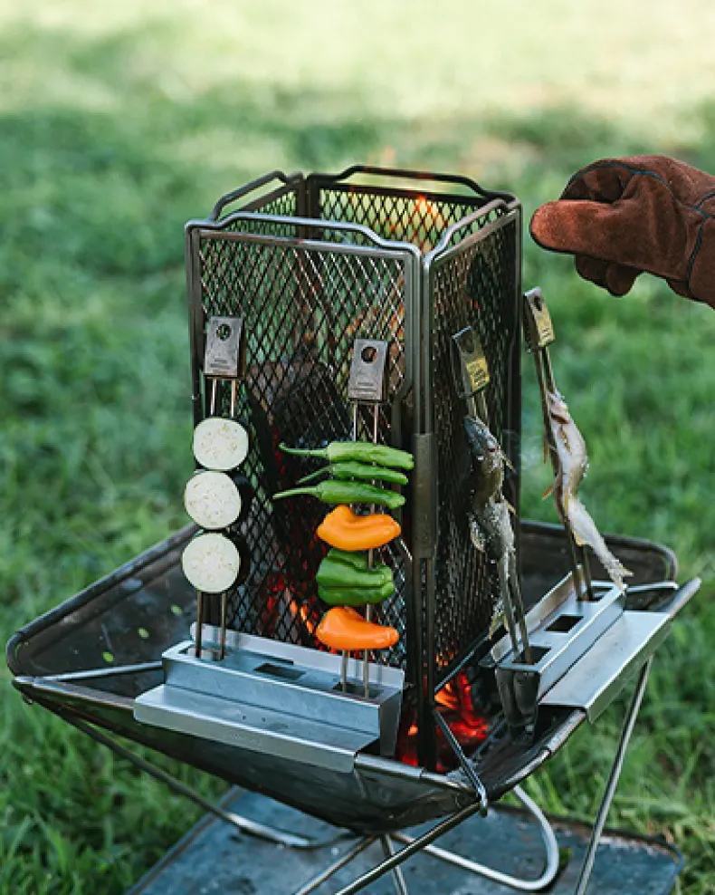 - Dimensions: Hearth: 220x185x450 mm, Skewer: 310x25x15 mm, Skewer Stand: 180x80x80 mm, Optional Hook: 370x70x5 mm