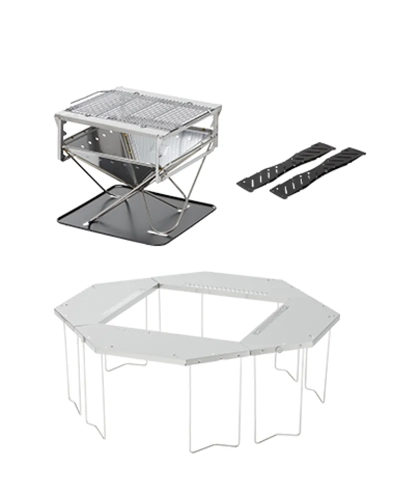 Create a cozy centerpiece with the Takibi Fire & Grill, ready for all your favorite , Jikaro Firering Table creates heat-safe table space for your cookware, and is compatible with surfaces using Low Height Legs, allowing you to create an extensive cooking and dining set up