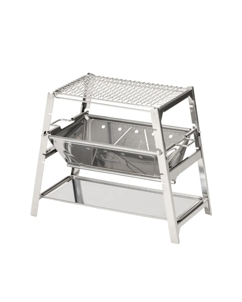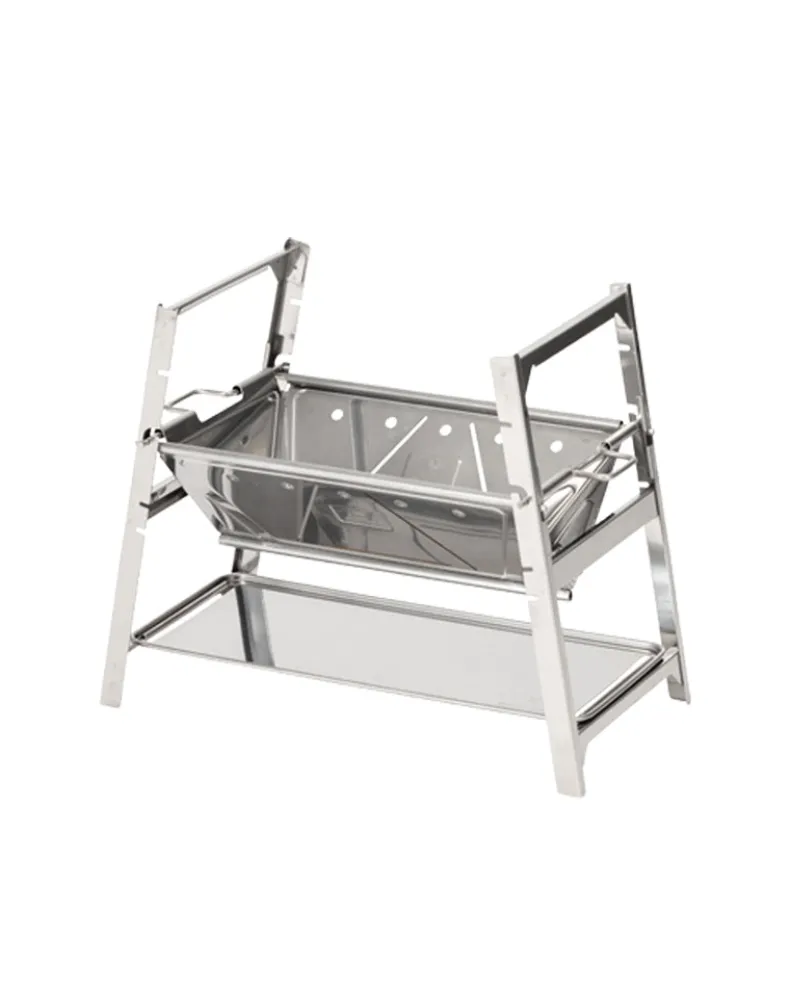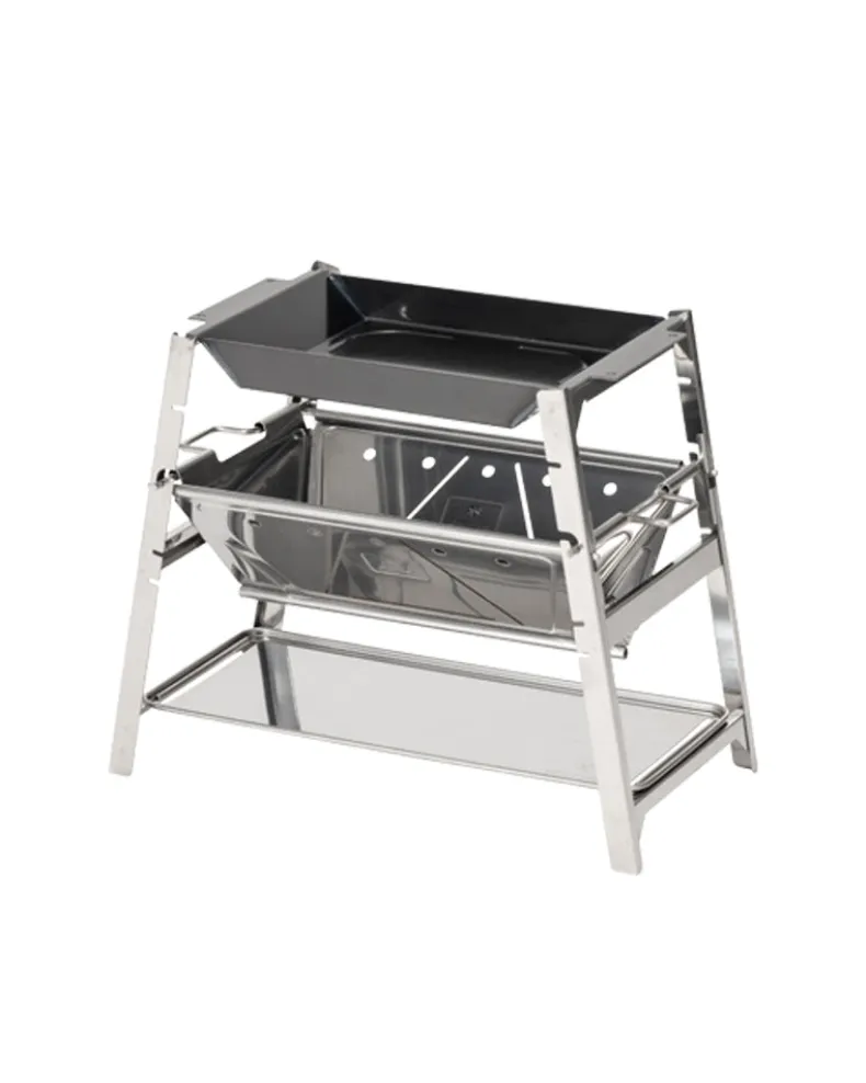 The Takibi Solo is a small compact fireplace. It is made of durable stainless steel that patinas with use. The Takibi Solo features two legs, a base plate, and fireplace body. Pair with the for a variety of cooking surfaces. To clean, after Takibi Solo has cooled down, hose off and let air dry.