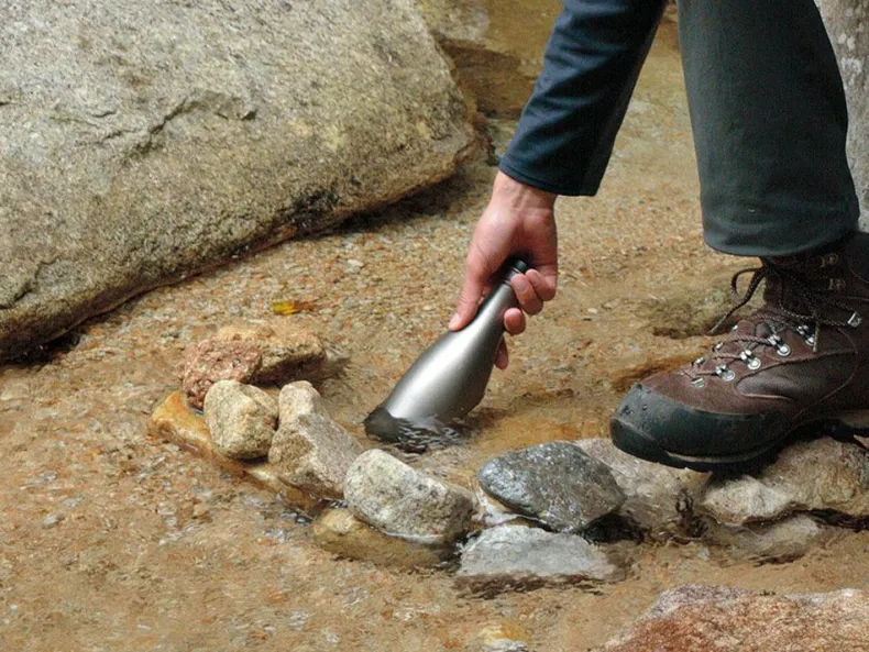 The Titanium Saké Bottle is designed and manufactured in Japan. Use the single-wall bottle to store and chill saké, whether in a mountain stream or bucket of ice. Titanium is inert and offers no flavor residue, so spirits will be perfectly preserved. Pair the Titanium Saké Bottle with the and .