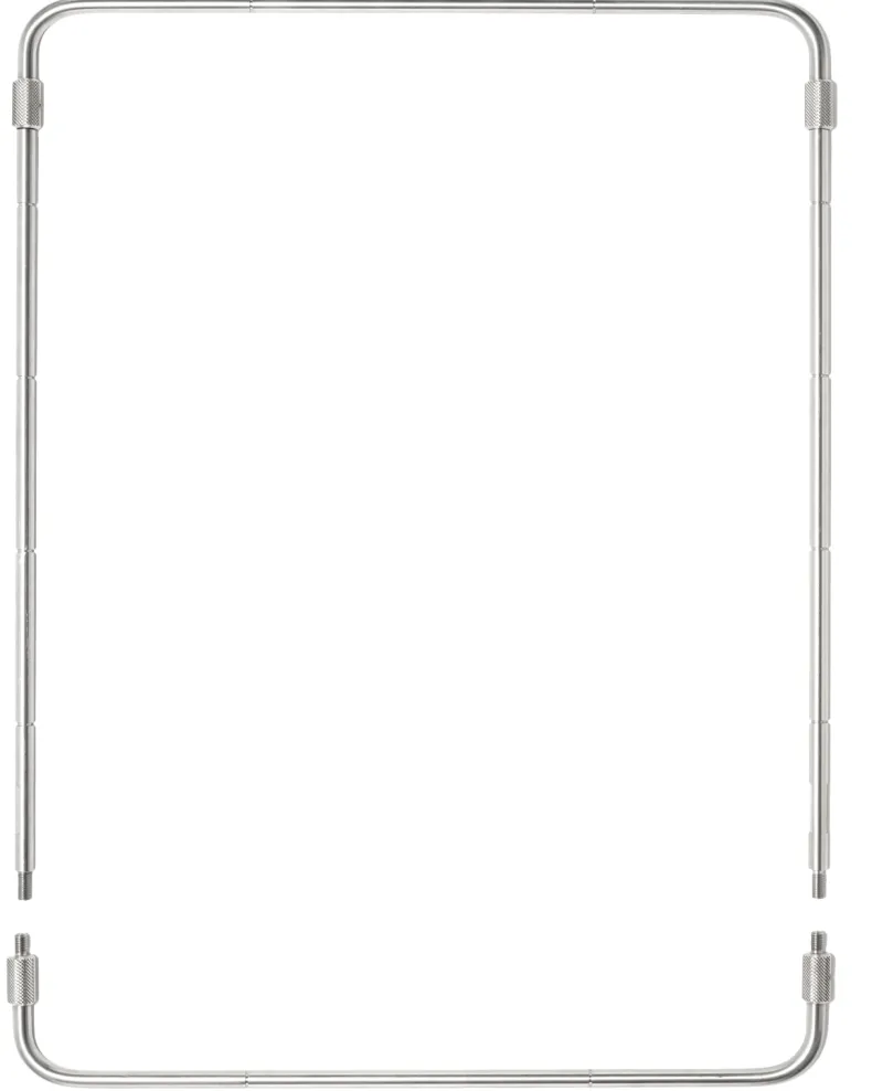 The TTA Unit Frame is a component of the IGT system and TTA series that can be used as a shelf for storage. Kitchen tools can be hung on the frame, and it is compatible with the Shallow Mesh Tray Half Unit and Deep Mesh Tray Half Unit for additional storage and organizing. To use, connect the frame ends into two TTA Clamp Tools and adjust the tension.